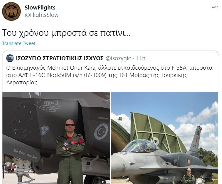 Ο Τούρκος επισμηναγός, άλλοτε φωτογραφίζονταν περήφανα δίπλα από ένα F-35 και τώρα αναγκάζεται να… προσαρμοστεί σε μία φωτογραφία δίπλα σε ένα γερασμένο τουρκικό F-16.