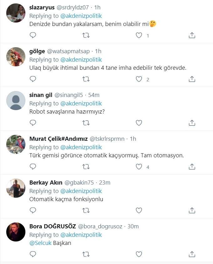 Οι Τούρκοι χρήστες του διαδικτύου πάντως «τρολάρουν» το ελληνικό drone ταχύπλοο, κάνοντας λόγο για εύκολη λεία του αντίστοιχου τουρκικού. Μάλιστα ρωτούν αν έχει και αυτόματο σύστημα… υποχώρησης μόλις δει τουρκικό πολεμικό πλοίο.