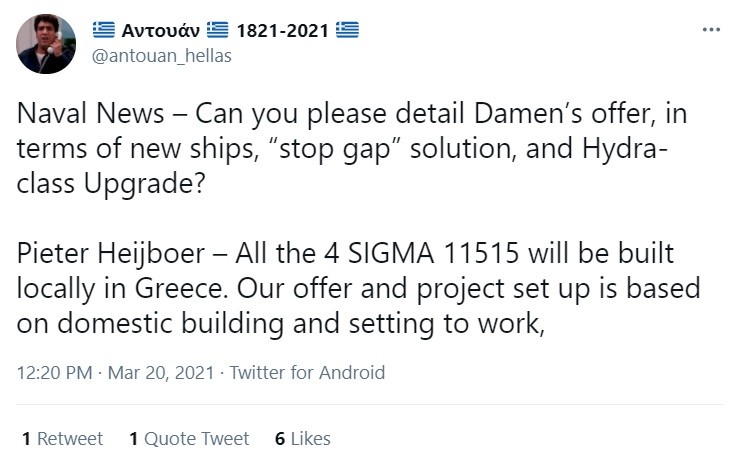 Φρεγάτες: Τρελή ολλανδική πρόταση για τέσσερις SIGMA 11515 και δύο Karel Doorman ενδιάμεση λύση - Και τα τέσσερα θα φτιαχτούν στην Ελλάδα.