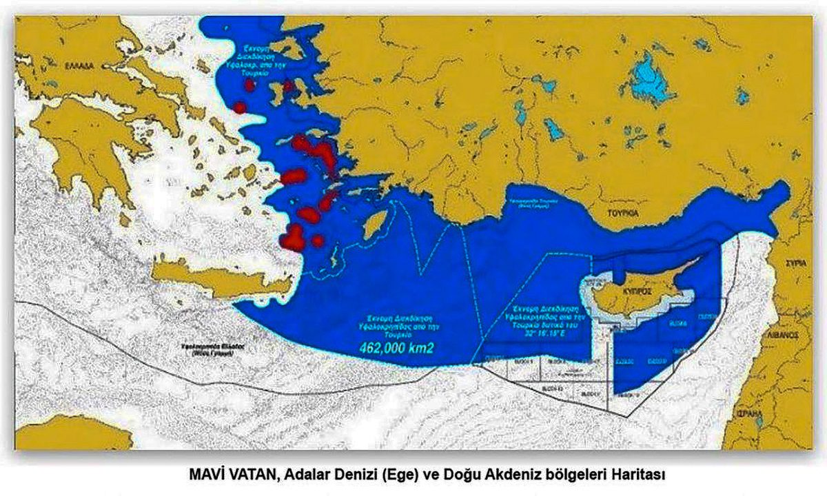 Η κυβέρνηση του Ρετζέπ Ταγίπ Ερντογάν που έχει ξεπεράσει κάθε όριο σχολιάζει το παραπάνω ως οτι «Η Γαλάζια Πατρίδα είναι η κόκκινη γραμμή της ανεξαρτησίας της Τουρκίας».
