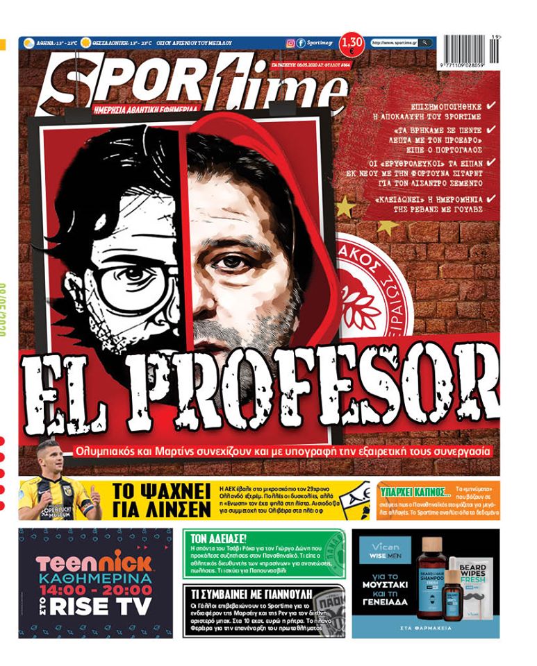 Διαβάστε τι αναφέρει σήμερα (8/5) το πρωτοσέλιδο του Sportime, που έχει ως πρώτο θέμα την ανανέωση του Πέδρο Μαρτίνς με τον Ολυμπιακό.