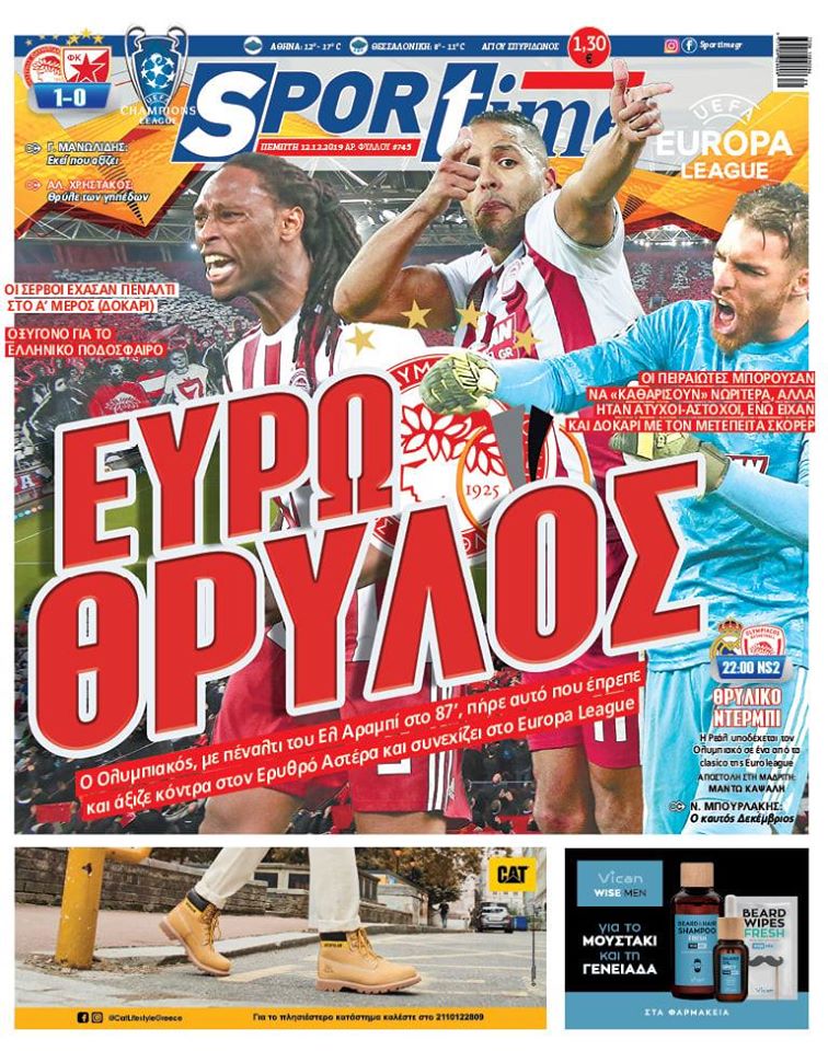 Διαβάστε τι αναφέρει σήμερα (12/12) το πρωτοσέλιδο του Sportime, με τη νίκη-πρόκριση του Ολυμπιακού επί του Ερυθρού Αστέρα και όσα ακολούθησαν να είναι η μεγάλη είδηση της ημέρας!