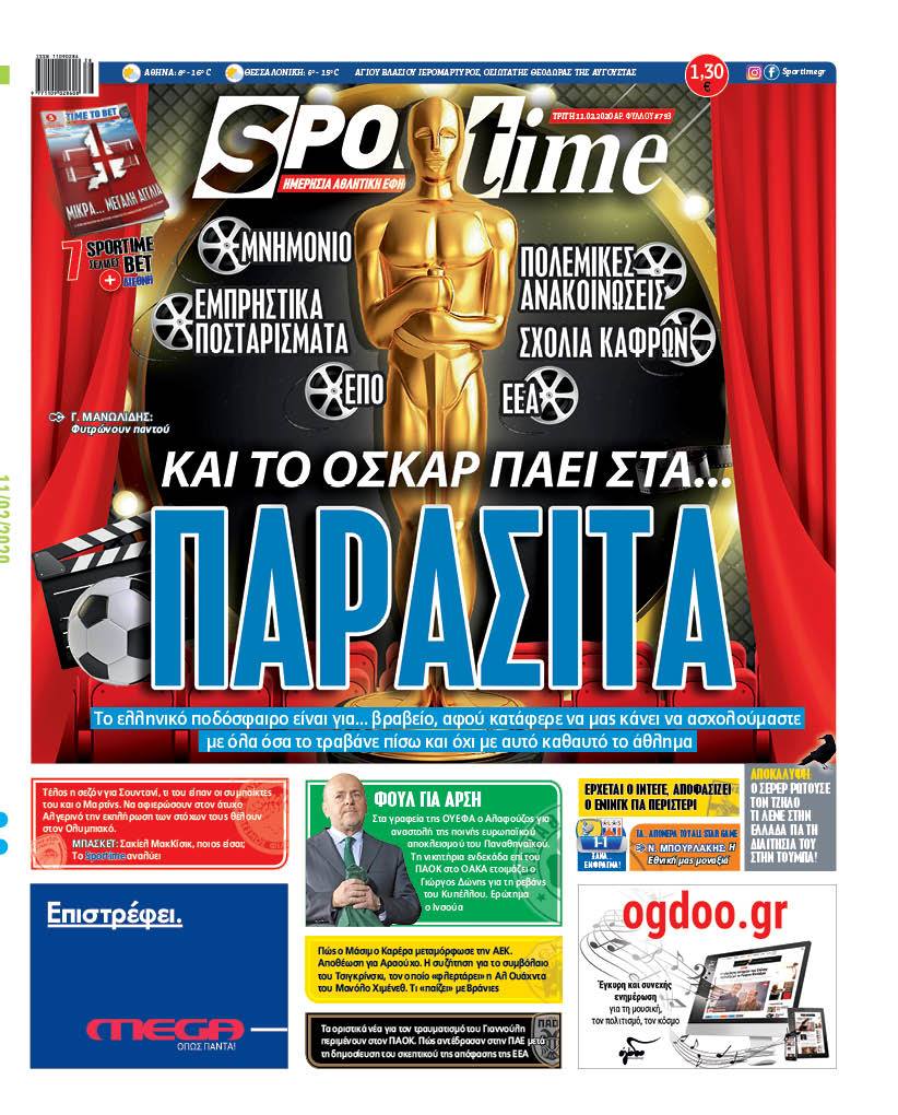 Διαβάστε σήμερα στο Sportime: «Και το Όσκαρ πάει στα… παράσιτα»