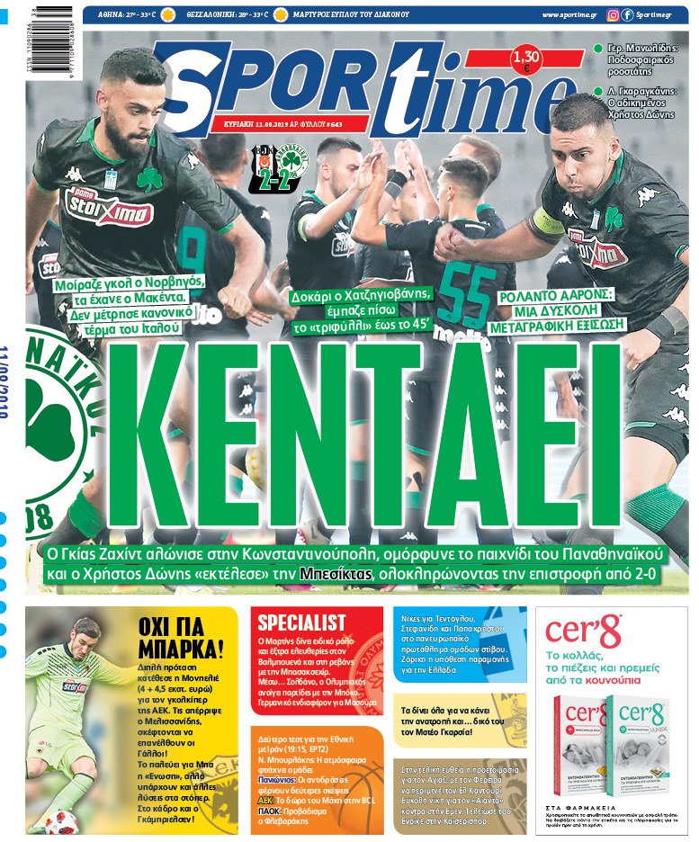 Διαβάστε τι αναφέρει σήμερα (11/8) το πρωτοσέλιδο του Sportime, που έχει ως πρώτο θέμα τα το φιλικό παιχνίδι του Παναθηναϊκού με τη Μπεσίκτας