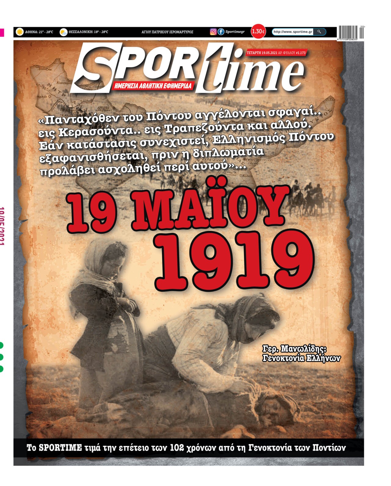 Sportime-Έντυπη έκδοση (19/5): Το Sportime, στο σημερινό του φύλλο, τιμά την επέτειο των 102 χρόνων από τη Γενοκτονία των Ποντίων.