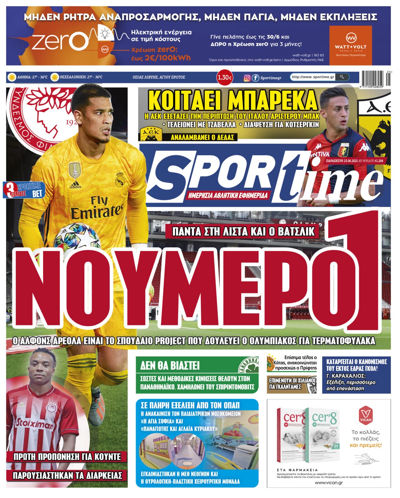 Sportime-Έντυπη έκδοση (25/6): Ο Αλφόνς Αρεολά είναι ο Νο1 στόχος του Ολυμπιακού! (pic)