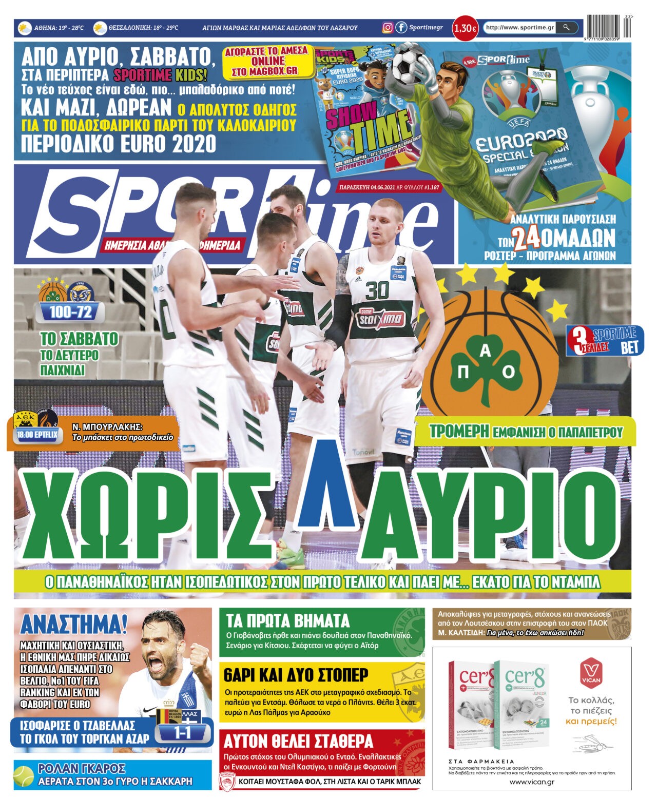 Sportime-Έντυπη έκδοση (4/6): Ο Παναθηναϊκός ήταν ισοπεδωτικός στον πρώτο τελικό κόντρα στο Λαύριο, ισοπαλία για την Εθνική στο Βέλγιο!