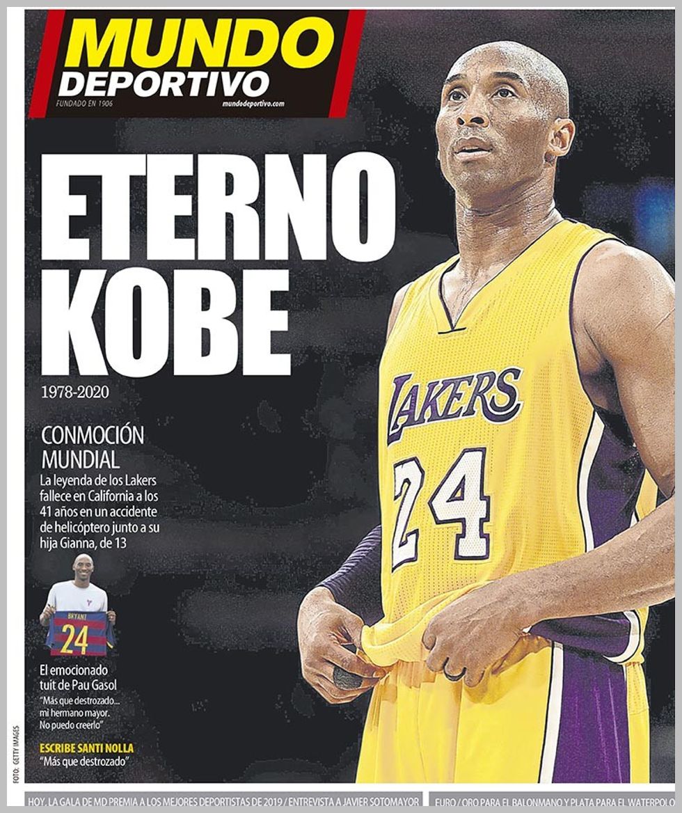 Ξένος αθλητικός Τύπος (27/1): Όπως είναι λογικό, η πλειοψηφία του Τύπου έχει ως κύριο θέμα τον θάνατο του Κόμπι Μπράιαντ.