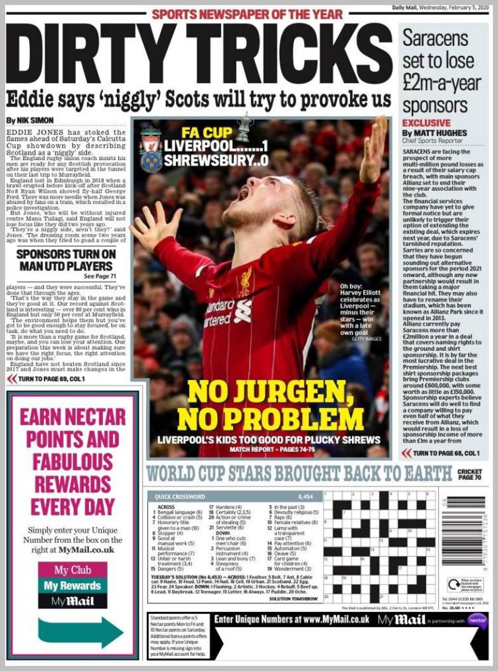 Ξένος αθλητικός Τύπος (5/2): Δείτε τι αναφέρουν τα σημαντικότερα πρωτοσέλιδα των μεγαλύτερων εφημερίδων της Ευρώπης για την Τρίτη 4 Φεβρουαρίου 2020.
