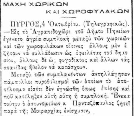 Κι άλλο ξύλο… Μάλλον, πιστολίδι λες και βρισκόμαστε στο Far West. Στον Πύργο βρέθηκαν χωροφύλακες προκειμένου να συλλάβουν οφειλέτες του δημοσίου και φυγόδικους ή να κατάσχουν σταφίδες από άλλους.