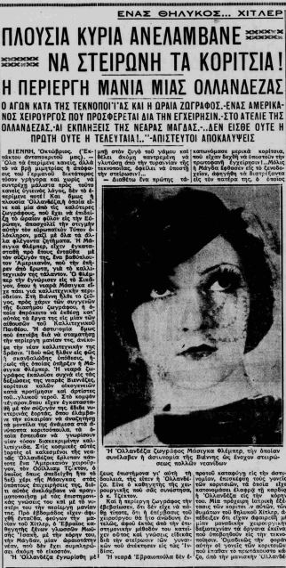 Στην Ολλανδία, μια διάσημη ζωγράφος της εποχής έδινε… αγώνα κατά της τεκνοποίησης και στείρωνε κορίτσια!!! Ο θηλυκός Χίτλερ, όπως την αποκαλεί η εφημερίδα είχε οργανωμένη κατάσταση καθώς μαζί της βρισκόταν και ένας αμερικανός χειρούργος.