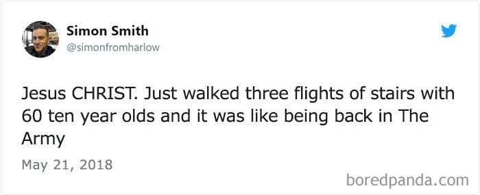 Ο Simon Smith, ένας πατέρας από την Αγγλία, αποφάσισε να συνοδέψει εθελοντικά μία σχολική εκδρομή σε ένα μουσείο επιστήμης. Καθόλη την διάρκεια της διαδρομής ανεβάζει ξεκαρδιστικά ποστ στο twitter περιγράφοντας την ''οδυνηρή'' εμπειρία του.