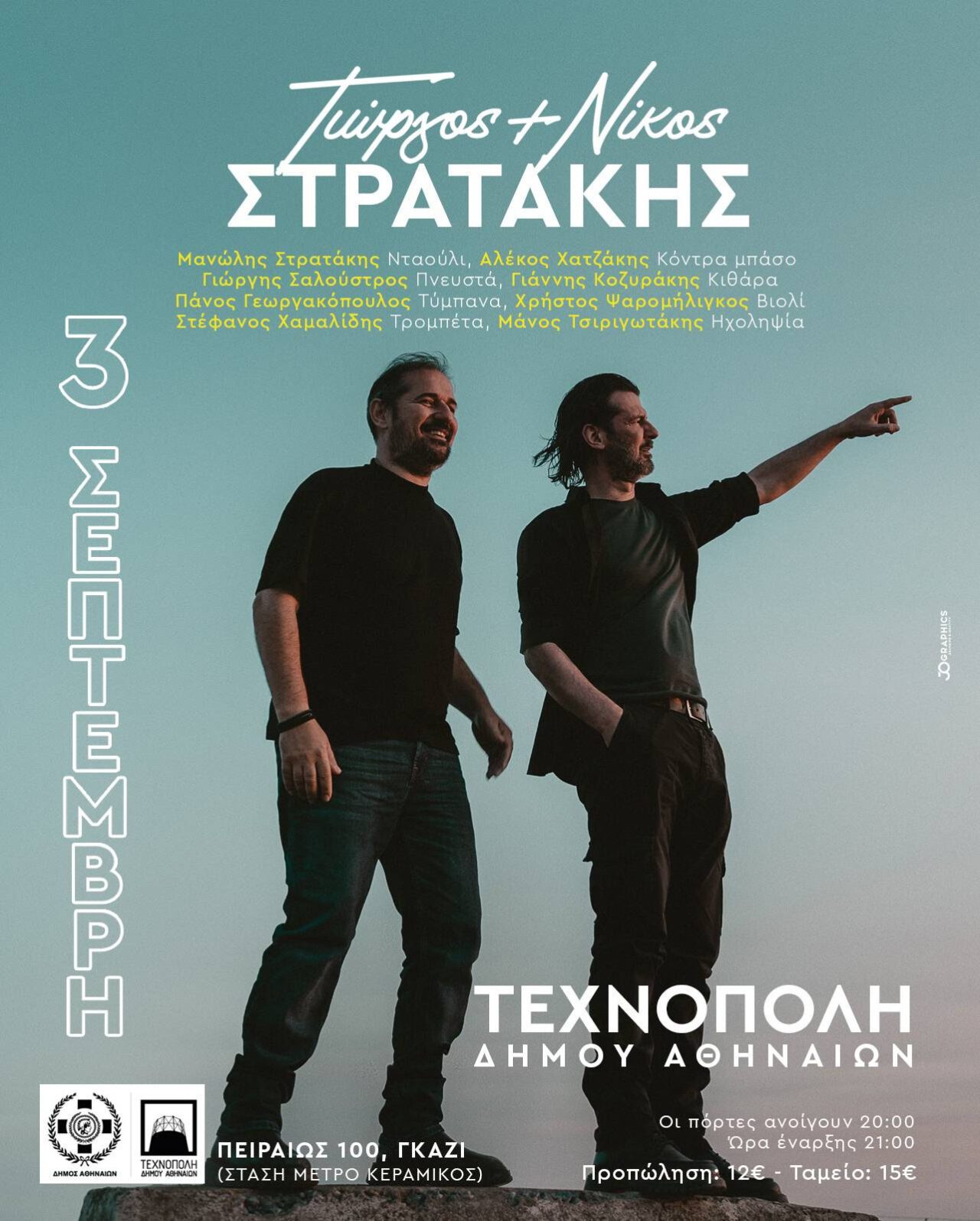 Οι Γιώργος & Νίκος Στρατάκης θα «γιορτάσουν» την καλοκαιρινή τους περιοδεία με με την εμφάνισή τους στην Τεχνόπολη Δήμου Αθηναίων.