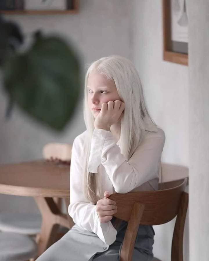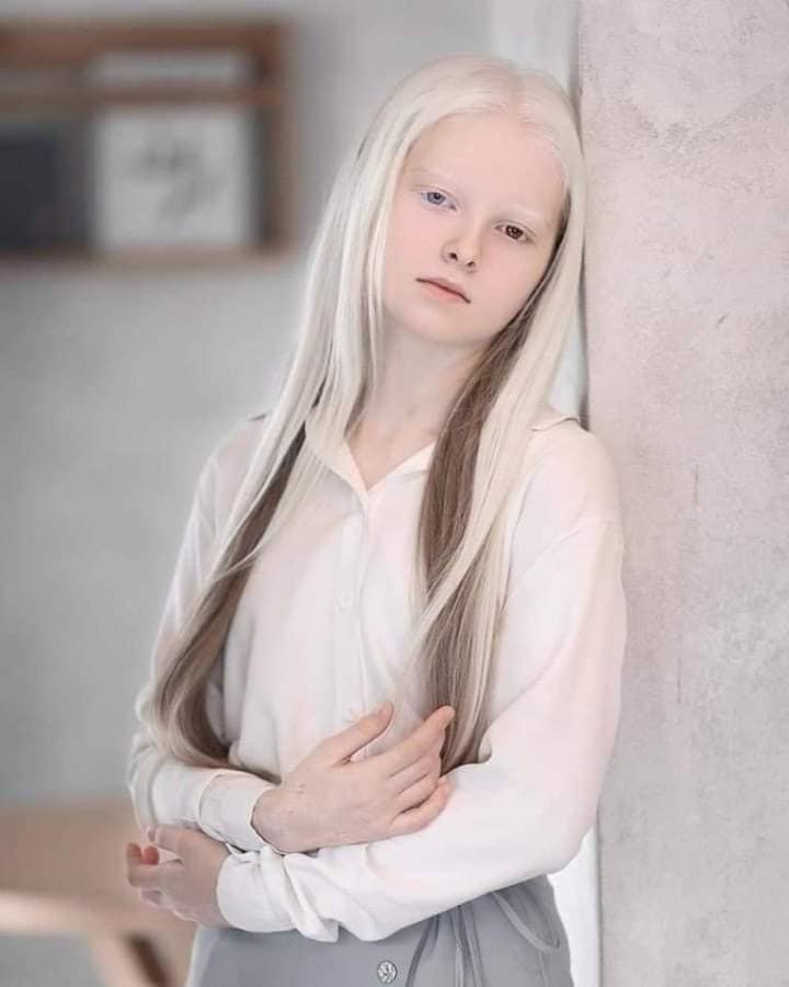 Ο αλμπινισμός είναι μία ασθένεια κατά την οποία λείπει τελείως η μελανίνη από τον άνθρωπο, πράγμα που κάνε το δέρμα και τα μαλλιά του τελείως λευκά. Στην ετεροχρωμία διαφέρουν σε χρώμα τα μάτια αυτού που έχει αυτή την κατάσταση. Έτσι η μικρή Αμίνα έχει ασπρα σχεδόν μαλλιά, ένα μάτι γαλάζιο και ένα καστανό.