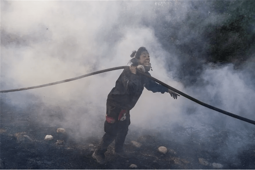 ννίδου από τον Πειραιά, υπάλληλος της Πολιτικής Προστασίας Σαρωνικού, έπεσε χθες στη μάχη με τις φλόγες στην πυρκαγιά της Αναβύσσου. Ο Άρης Μεσσήνης ήταν εκεί για να το αποτυπώσει με το φακό του το στιγμιότυπο. Τους ευχαριστούμε.