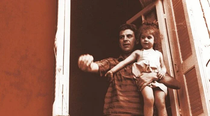 Η μαμά έτρεξε φουριόζα να φτιάξει μια βαλίτσα κι εμείς μείναμε κοντά σου, κολλήσαμε πάνω σου και τα δυο, τραβούσαμε μαζί σου σαν ένας μικρούλης Χορός αρχαίας τραγωδίας… Κάποια στιγμή μάς απομάκρυναν οι χωροφυλάκοι, αλλά μας άφησαν να παραμείνουμε εκεί κοντά, έως ότου σε βάλουνε μέσα στο αυτοκίνητο. Θυμάμαι, υπήρχε πολλή ανθρώπινη κίνηση γύρω μας˙ ήμασταν μέσα σε μια μόνιμη κίνηση. Βοή, βουή, βουητό, βούισμα στ’ αυτιά μου. Όλες οι ομιλίες τους βοή, βουή, βουητό, βούισμα, δεν θυμάμαι σαφείς ομιλίες, μόνο βοή, βουή, βουητό, βούισμα… Αλλά τα μάτια μου θυμούνται τα πάντα! Εκθαμβωτική ανάμνηση! Πάλι ο Χορός μας πήγαινε μια από δω μια από κει, έως ότου ο Ήρωας τοποθετήθηκε στην τελευταία θέση του, της τελευταίας του Σκηνής: Σ’ έβγαλαν από την είσοδο του κήπου έξω στον δρόμο. Οι μαστόροι ολόγυρα, ολόγυρα κι οι χωροφύλακες. […]