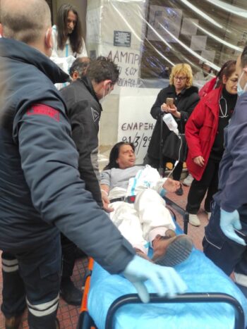 Λιποθύμησε και μεταφέρθηκε εσπευσμένα στο νοσοκομείο απεργός πείνας που βρισκόταν έξω από το υπουργείο Υγείας.