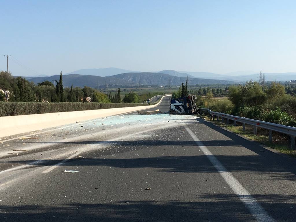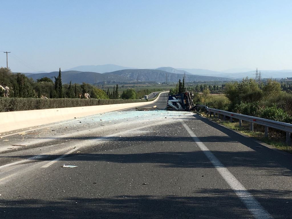 Στο 117ο χιλιόμετρο της Εθνικής ανετράπη νταλίκα που μετέφερε τζάμια, ενώ έχει προκληθεί και ουρά χιλιομέτρων