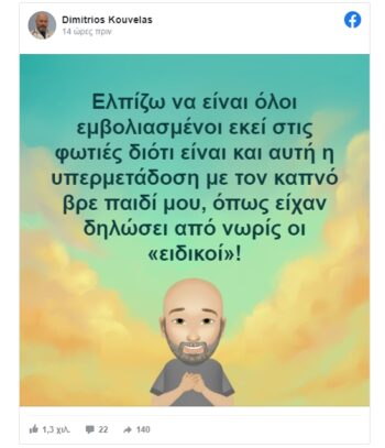 Δημήτρης Κούβελας: Αιχμηρό σχόλιο για την κυβέρνηση – «Ελπίζω να είναι όλοι… εμβολιασμένοι εκεί στις φωτιές…»