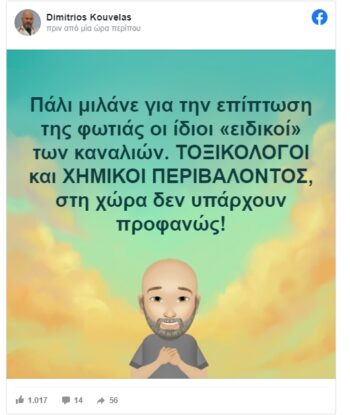 Λίγο αργότερα ο καθηγητής επανήλθε με νέα ανάρτηση που έκανε κριτική σε διάφορους «ειδικούς» των καναλιών που αυτές τις δύσκολες ώρες σπέρνουν πανικό, γράφοντας: