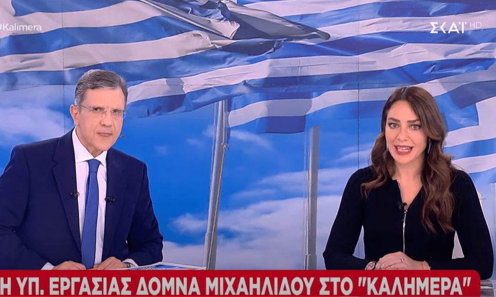 Η υπουργός Εργασίας εμφανίστηκε στην εκπομπή του «γαλάζιου» Γιώργου Αυτιά στον ΣΚΑΪ που φέρεται να ετοιμάζεται για υποψήφιος ευρωβουλευτής με τη ΝΔ, οπότε το κλίμα ήταν «οικογενειακό» και η Δόμνα μπορούσε να πει ό,τι ακρότητα ήθελε, έχοντας δεδομένη την επιδοκιμασία του μελλοντικού συναδέλφου της, που τύποις είναι ακόμα «δημοσιογράφος».
