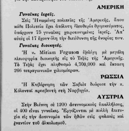 Οπως βλέπετε στο επόμενο ρεπορτάζ, υπάρχει ενημέρωση για τα πόστα που κατέλαβαν γυναίκες σε άλλες χώρες του πλανήτη. Οπως αναφέραμε η εφημερίδα προσπαθούσε να βελτιώσει τη θέση της γυναίκας στην ελληνική κοινωνία.