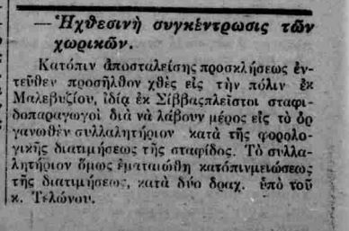 Τρομερή είδηση… Πλήθος σταφιδοπαραγωγών είχε φτάσει στο Ηράκλειο προκειμένου να λάβει μέρος στο συλλαλητήριο κατά της φορολογικής διατίμησης της σταφίδας. Τελικά ματαιώθηκε η εκδήλωση καθώς μειώθηκε κατά 2 δραχμές η διατίμηση… Το… έσωσε ο τελώνης!