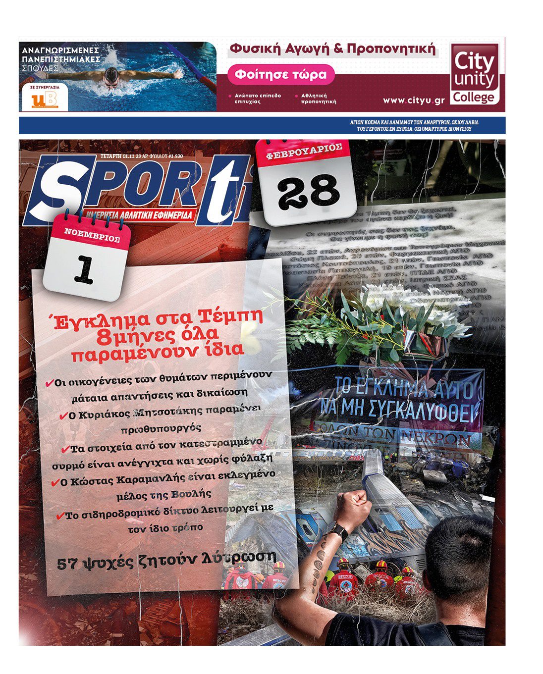 Η πρωτοβουλία που πήρε το κόμμα ΝΙΚΗ και ο πρόεδρος Δημήτρης Νατσιός, να συναντήσει εκπροσώπους του συλλόγου πληγέντων αποτελεί μια ιδανική αφορμή για αυτό. Να μην ξεχαστεί. Να βοηθήσουμε όλοι να μην ξεχαστεί. Σε αυτή την οδό βάδισε και το σημερινό εξώφυλλο του Sportime.