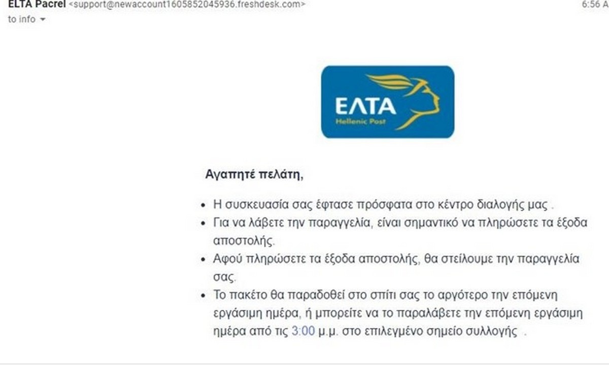 ΕΛΤΑ: Προσοχή απάτη με e-mail