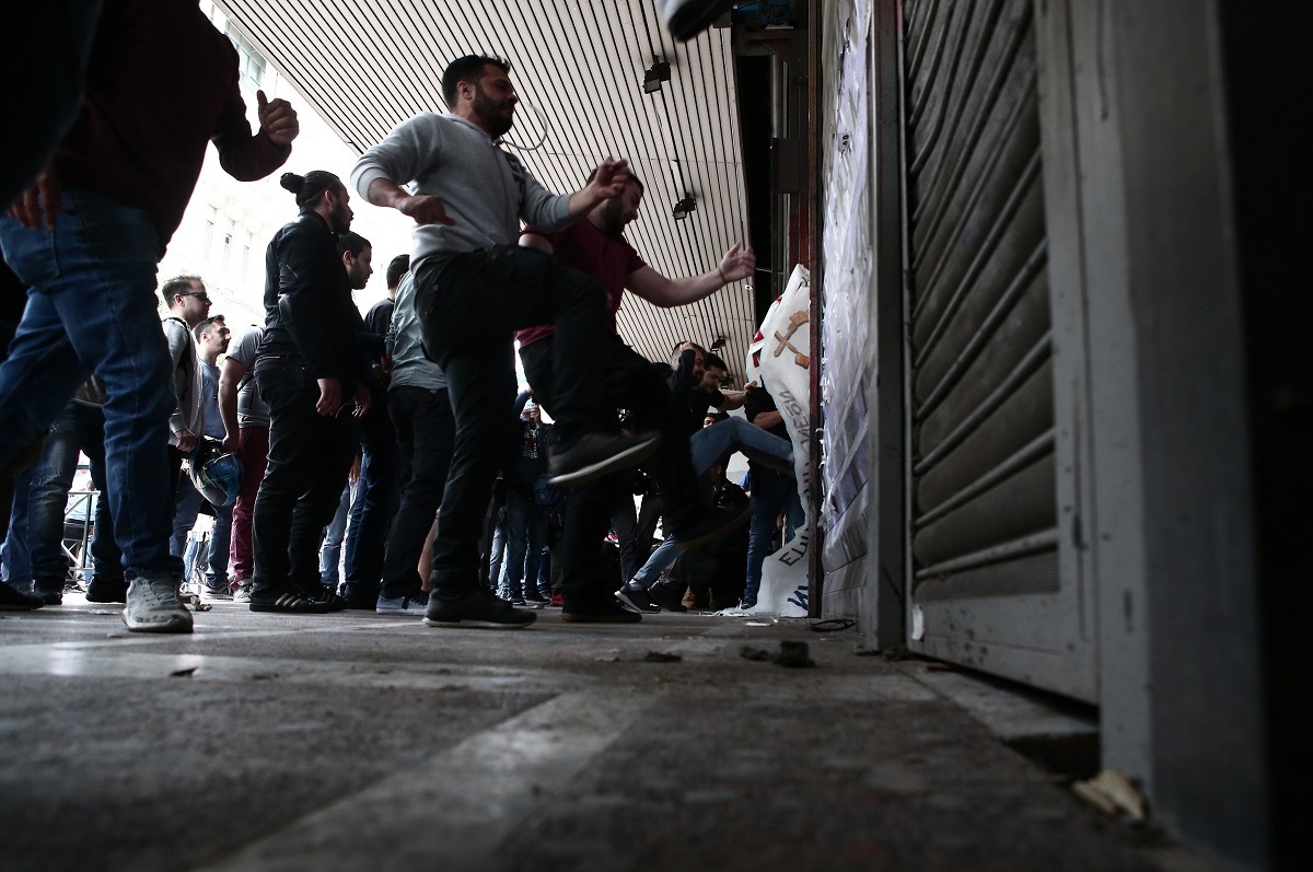 Η συγκέντρωση των εργαζόμενων στο Σύνταγμα, κατέληξε με μερικούς απ’ αυτούς να χτυπούν με κλωτσιές τις πόρτες του υπουργείου!