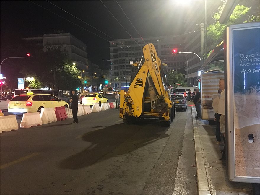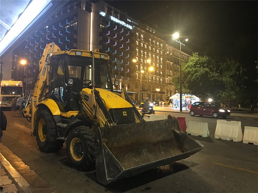Ξεκίνησαν, λίγα λεπτά μετά τις 10 το βράδυ του Σαββάτου, τα έργα στην πλατεία Συντάγματος, στο πλαίσιο της δεύτερης φάσης της υλοποίησης του Μεγάλου Περιπάτου της Αθήνας.