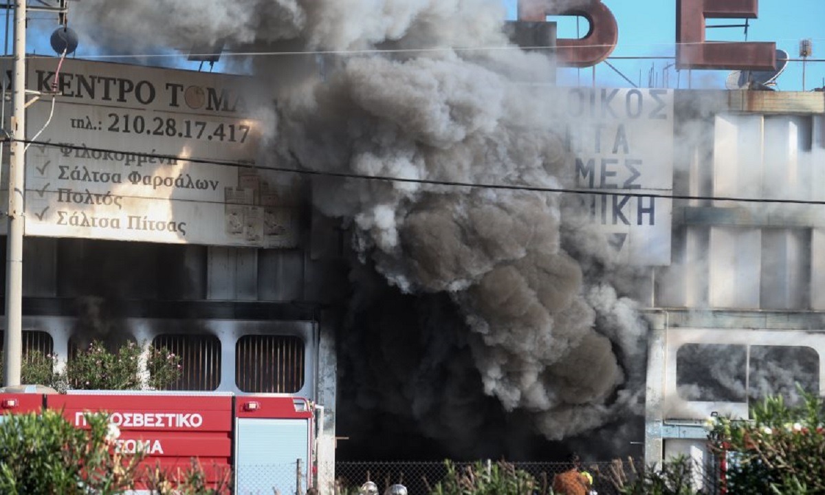 Η πυρκαγιά έχει πάρει έκταση και έχει επεκταθεί σε όλο το κτίριο, ενώ λόγω των πλαστικών που καίγονται έχει καλυφθεί με πυκνό μαύρο καπνό ο ουρανός της Αττικής.