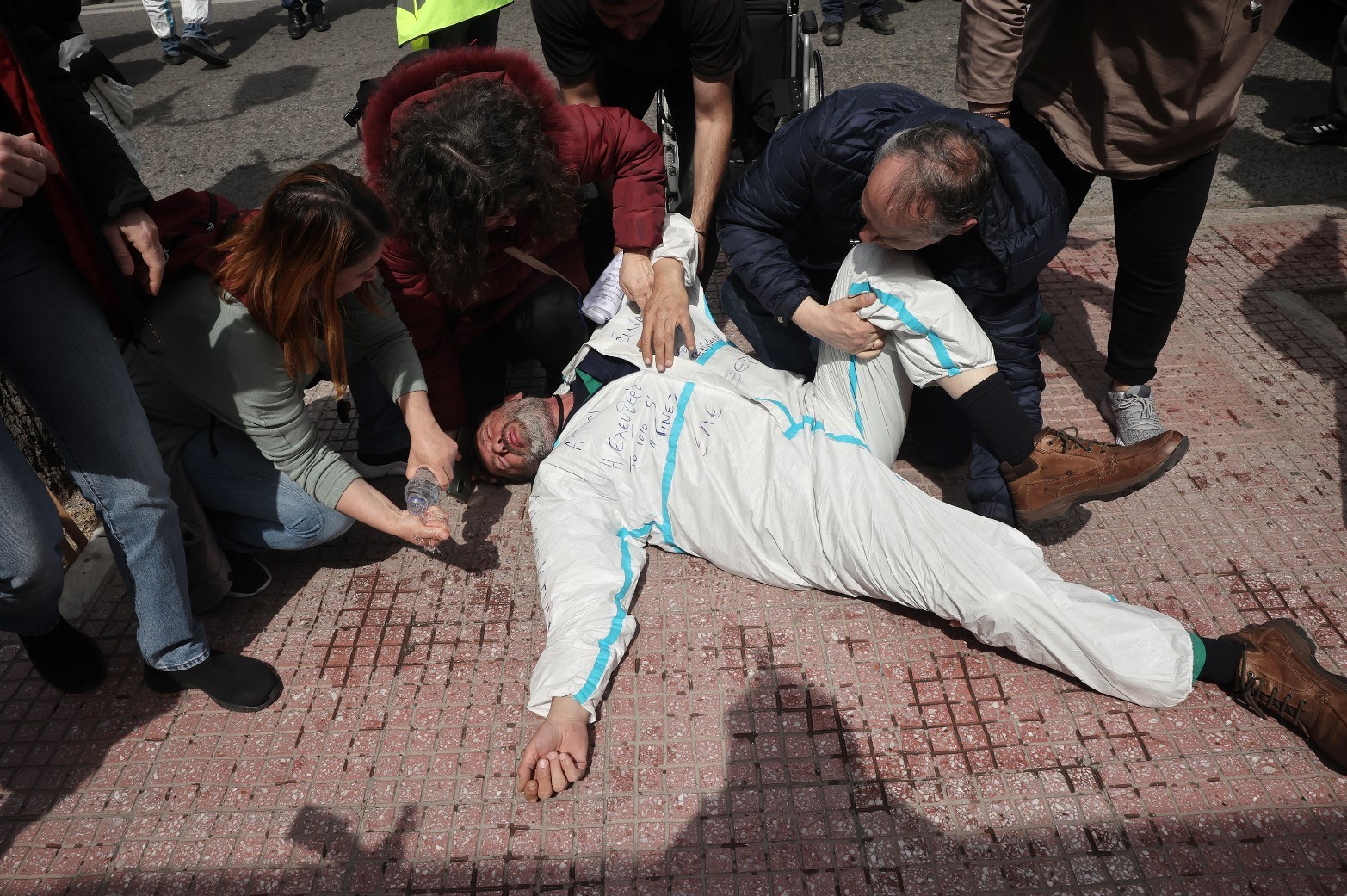 Οι φωτογραφίες και τα βίντεο είναι συγκλονιστικά, αφού βλέπουμε πέντε συμπολίτες μας να βρίσκεται σε αναπηρικά αμαξίαδια.