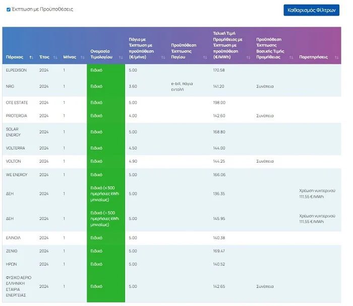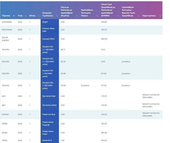 Συγκεκριμένα, όλα είναι διαθέσιμα από την Ρυθμιστική Αρχή Ενέργειας. Όλες οι τελικές τιμές και για όλους τους παρόχους.