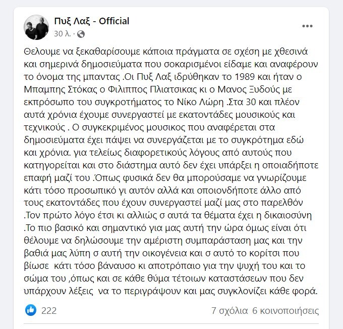 Η ανακοίνωση των ΠΥΞ ΛΑΞ για το θέμα