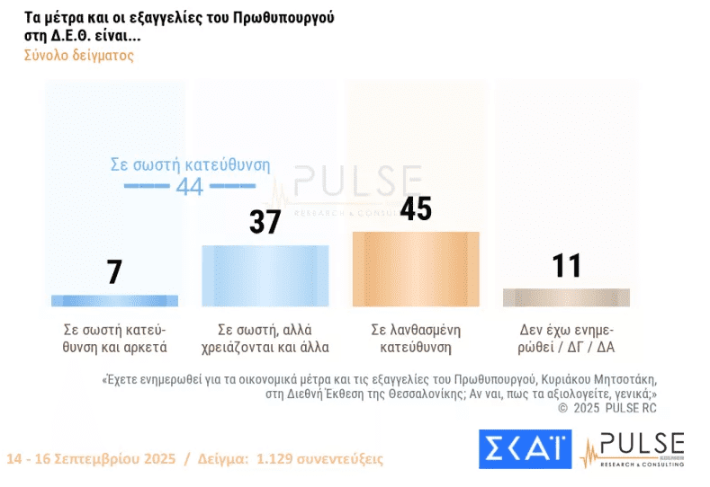 Κυβέρνηση: Δυσάρεστα νέα και από τη δημοσκόπηση Pulse – Μόνο το 7% βρίσκει επαρκή τα μέτρα της ΔΕΘ – Οι νέοι τα απορρίπτουν περισσότερο
