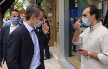 Ο κ. Μητσοτάκης έβγαζε συχνά την μάσκα του για να μιλάει με τους πολίτες, πιάνοντας της από την μπροστά πλευρά της με γυμνά χέρια ενώ δεν ήταν λίγες οι φορές που την φορούσε στο λαιμό και όχι τη μύτη και το στόμα.