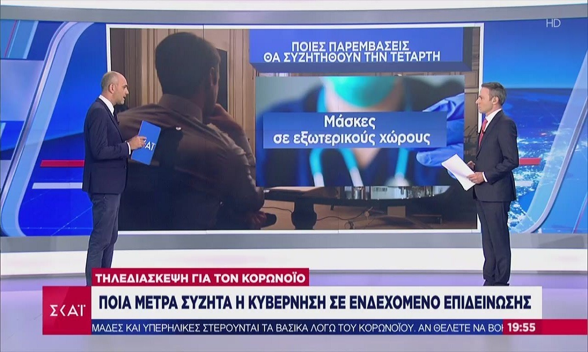 Την ίδια ώρα, σύμφωνα με το ρεπορτάζ του ΣΚΑΪ, στην τηλεδιάσκεψη που είναι προγραμματισμένη να γίνει στο Μέγαρο Μαξίμου την Τετάρτη, 19 Αυγούστου, με τους λοιμωξιολόγους, θα συζητηθούν οι εξής παρεμβάσεις: