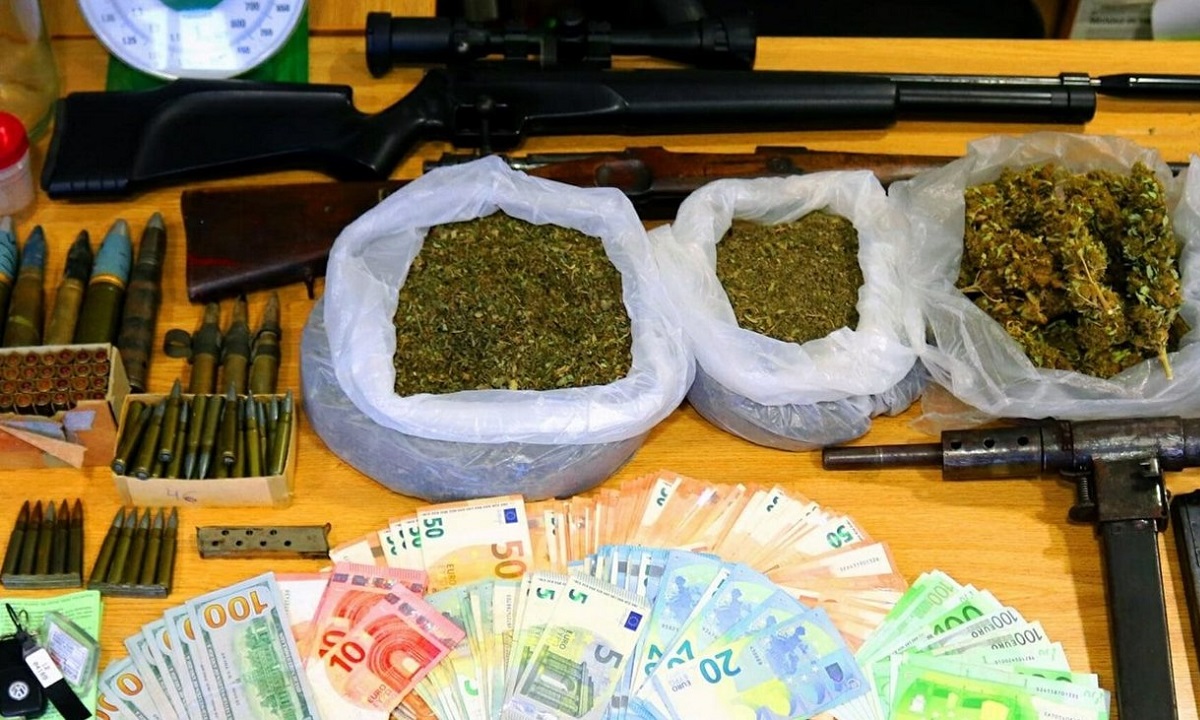 Το ζευγάρι συνελήφθη μετά από αιφνιδιαστική έρευνα στο σπίτι τους, όπου αποκαλύφθηκε ότι έκρυβαν κάνναβη βάρους 1.355 γραμμαρίων, η οποία θα μπορούσε να αποφέρει όφελος από παράνομη δραστηριότητα ύψους 9.000 -12.000 ευρώ, εξοπλισμό παραγωγής κάνναβης με υδροπονική μέθοδο και σημαντικό οπλισμό.