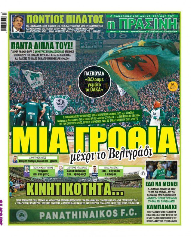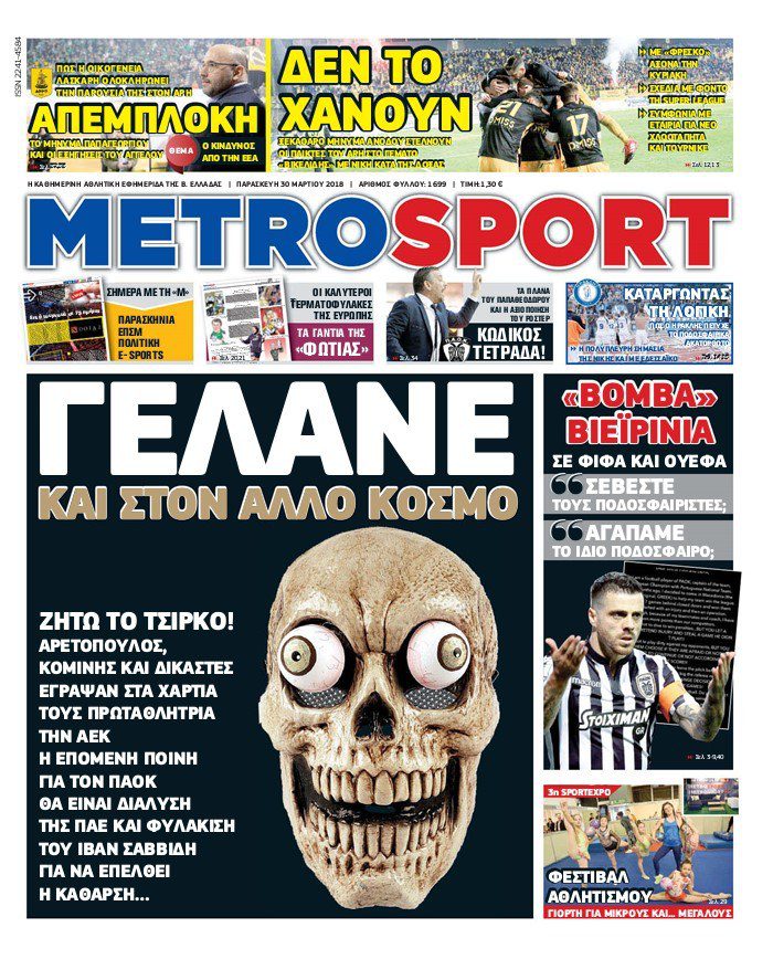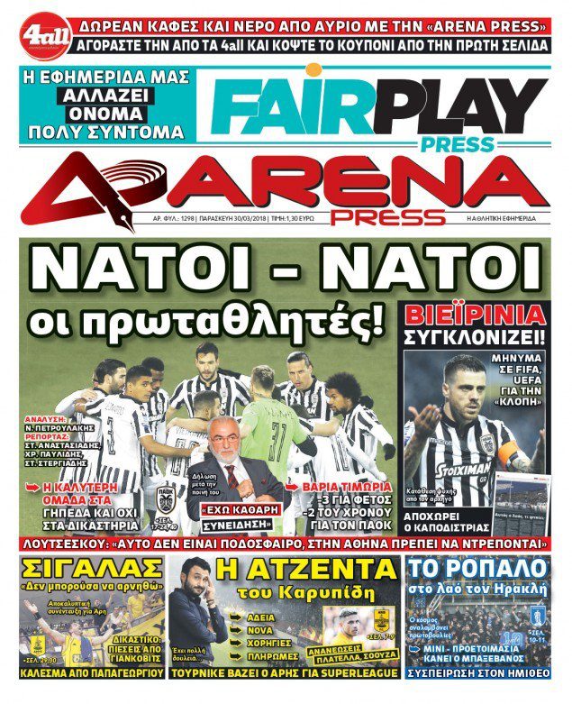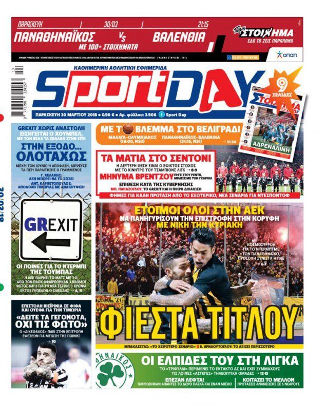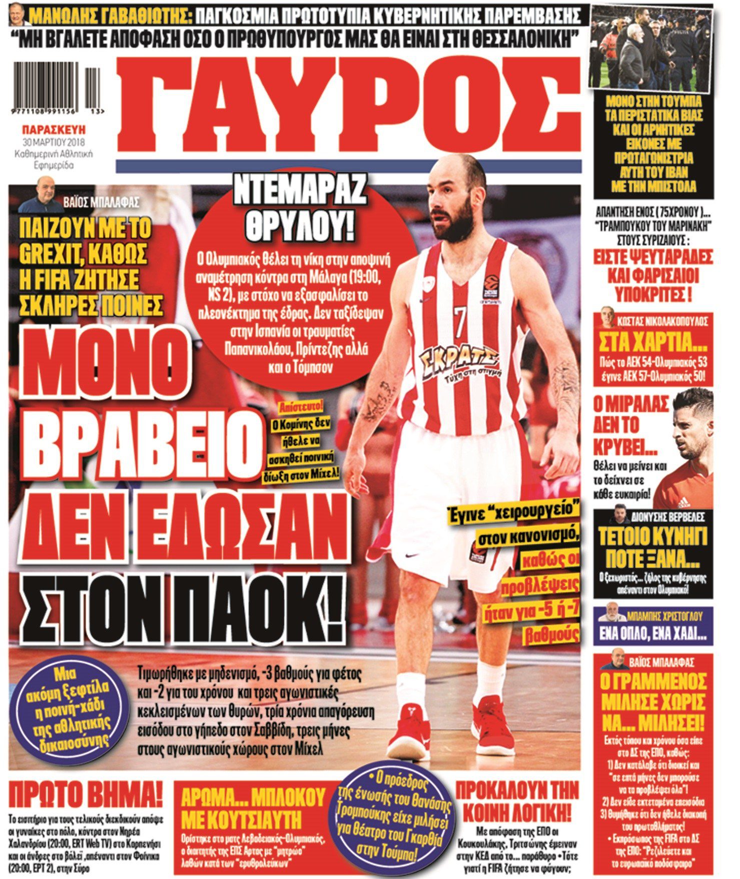 Δείτε τα πρωτοσέλιδα των αθλητικών εφημερίδων της Παρασκευής 30/3/2018: