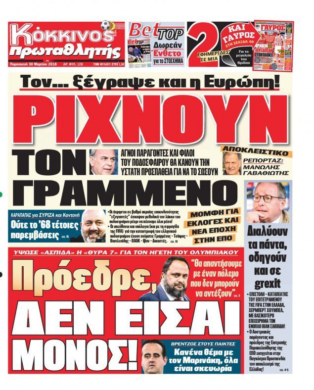Ο αθλητικός Τύπος σήμερα Παρασκευή 30/3