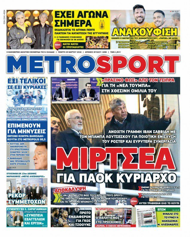 Ο αθλητικός τύπος σήμερα Πέμπτη 29/03