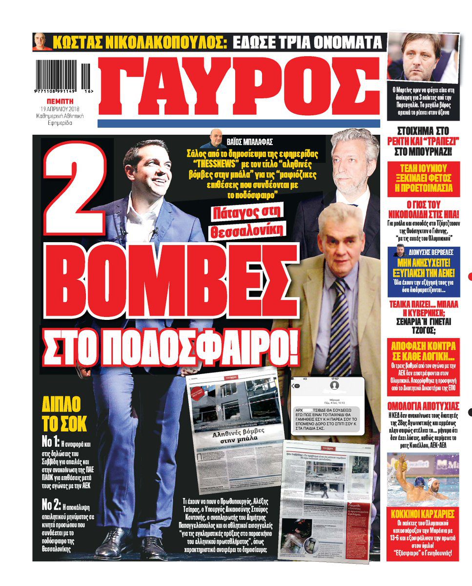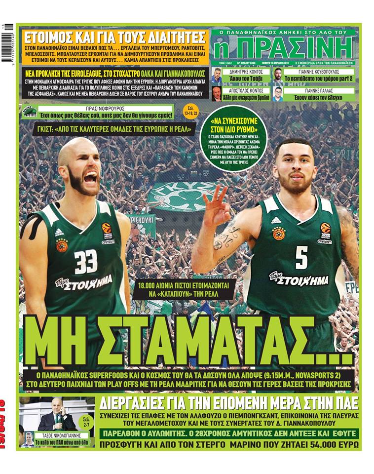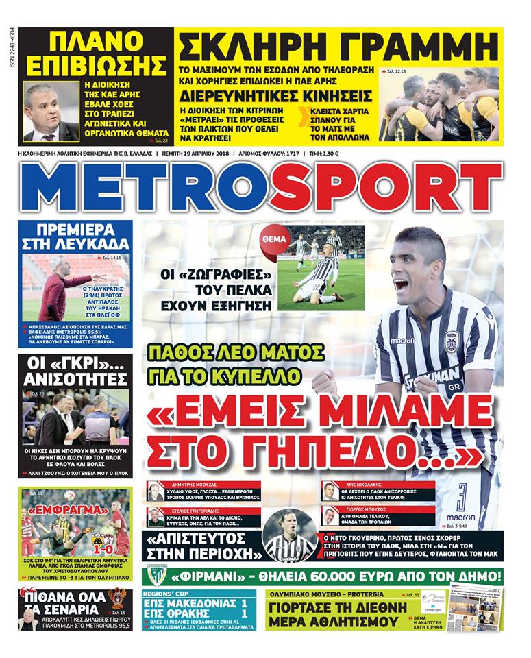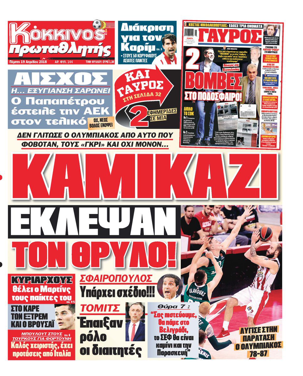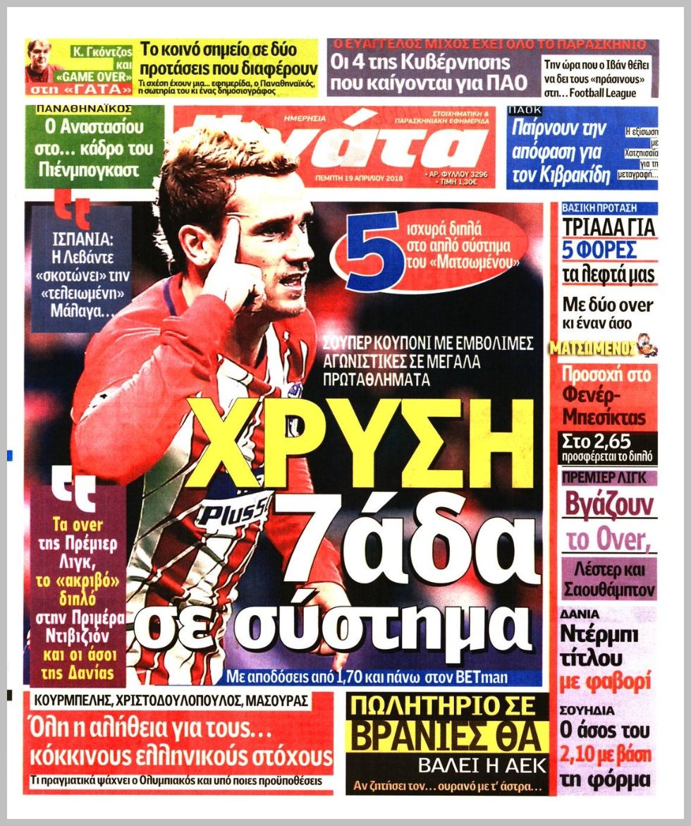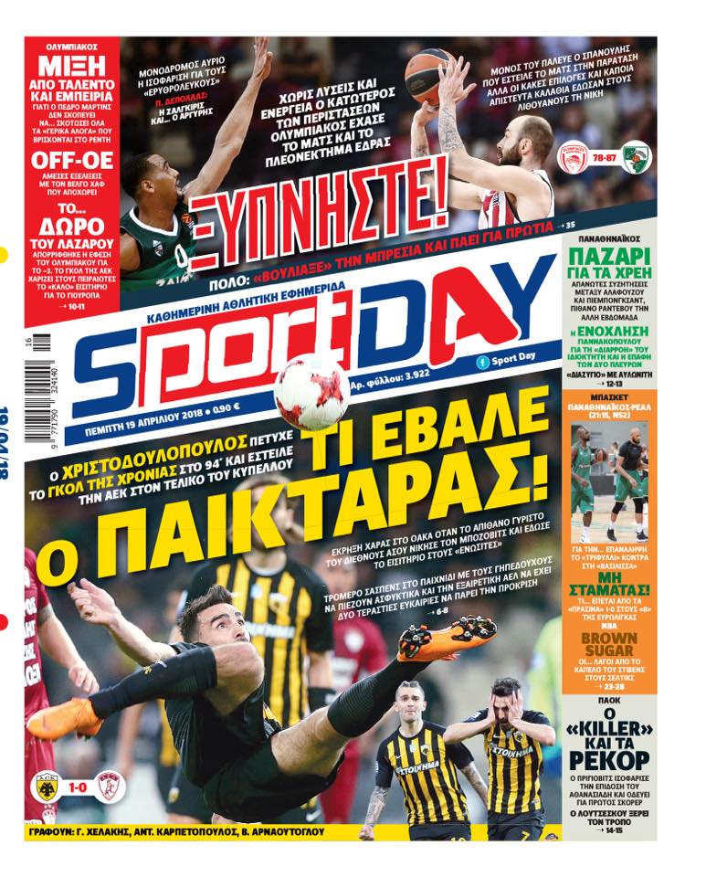 Ο αθλητικός Τύπος της Πέμπτης 19/4/2018