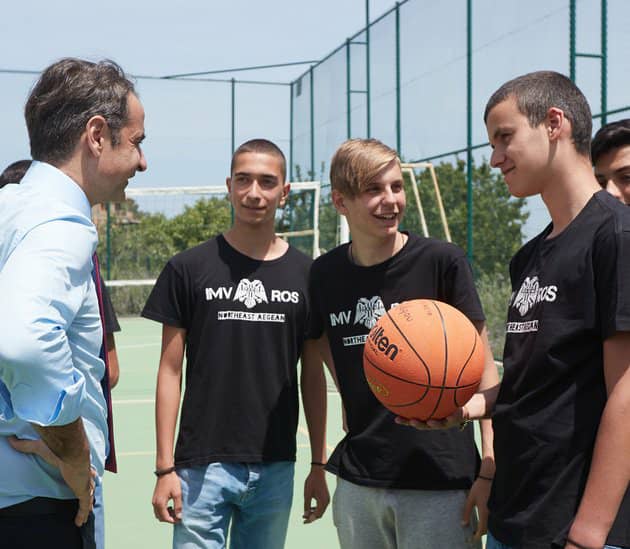 Ο Κυριάκος αν και γνωστός για τα «ερυθρόλευκα» αισθήματα του ο πρόεδρος της Νέας Δημοκρατίας, φωτογραφήθηκε ανάμεσα τους, ενώ δεν δίστασε να ποζάρει με φανέλα του ΠΑΟΚ, που οι μαθητές του έκαναν δώρο.