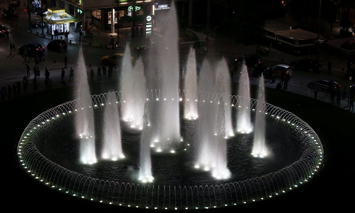 Χαρακτηριστικά διαμέτρου 30 μέτρων που ο κεντρικός του πίδακας τινάζει το νερό σε ύψος ως και 20 μέτρα ενώ συνολικά διαθέτει 188 δέσμες νερού και 177 υποβρύχιους προβολείςστο κέντρο της. Επίσης μετά από πολύ καιρό μπαίνει σε πλήρη λειτουργία και το γλυπτό υδροκινητικής λειτουργίας του Γιώργου Ζογγολόπουλου.
