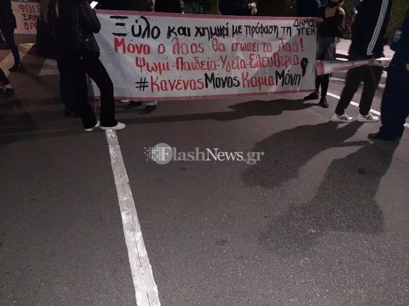Με δεκάδες αστυνομικούς στο κέντρο των Χανίων, μέλη κομμάτων και συλλογικοτήτων κατέβηκαν στην πόλη και συγκεντρώθηκαν με πανό στην οδό Νικηφόρου Φωκά, πιο κάτω από το Ωδείο της πόλης.