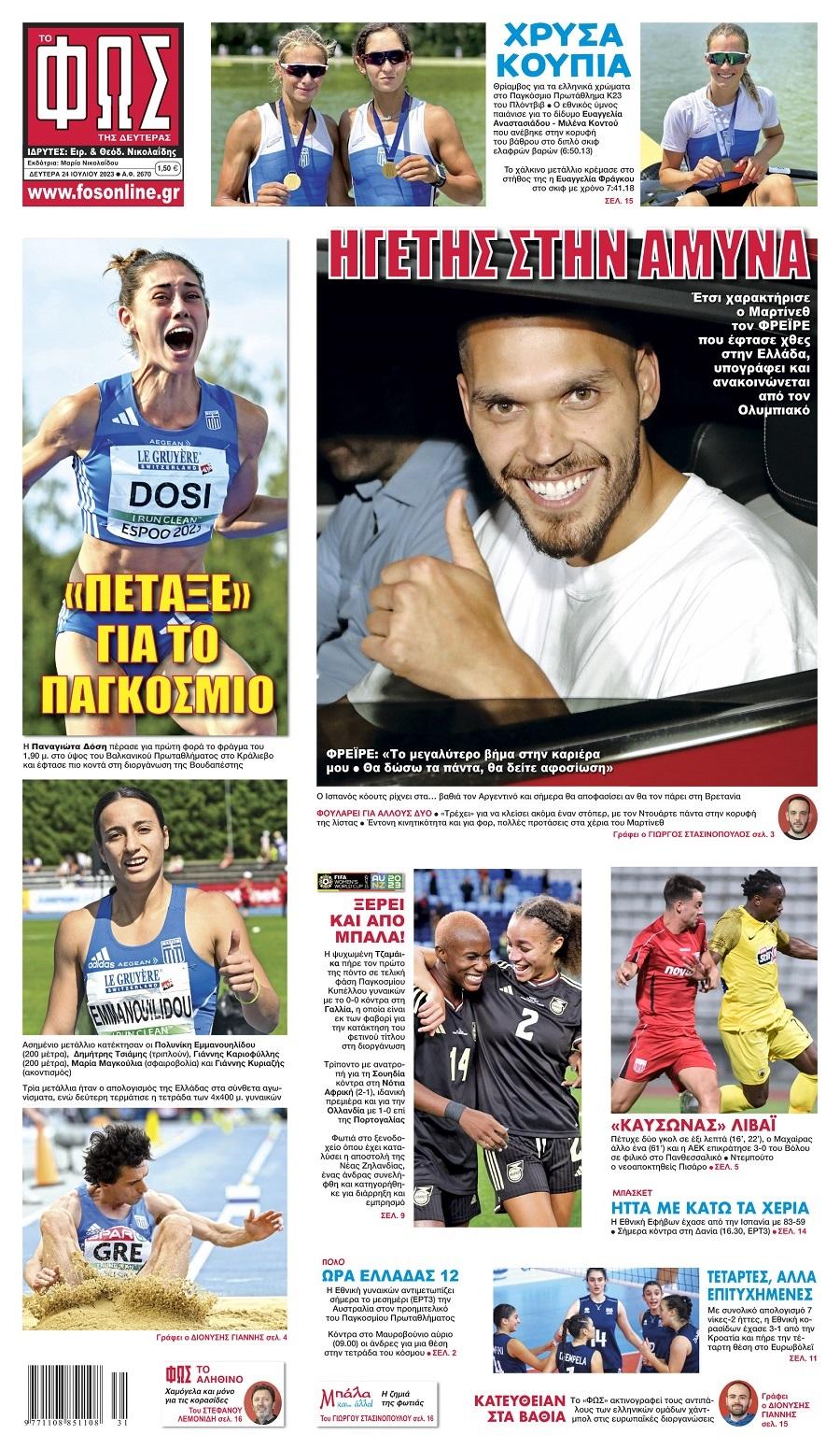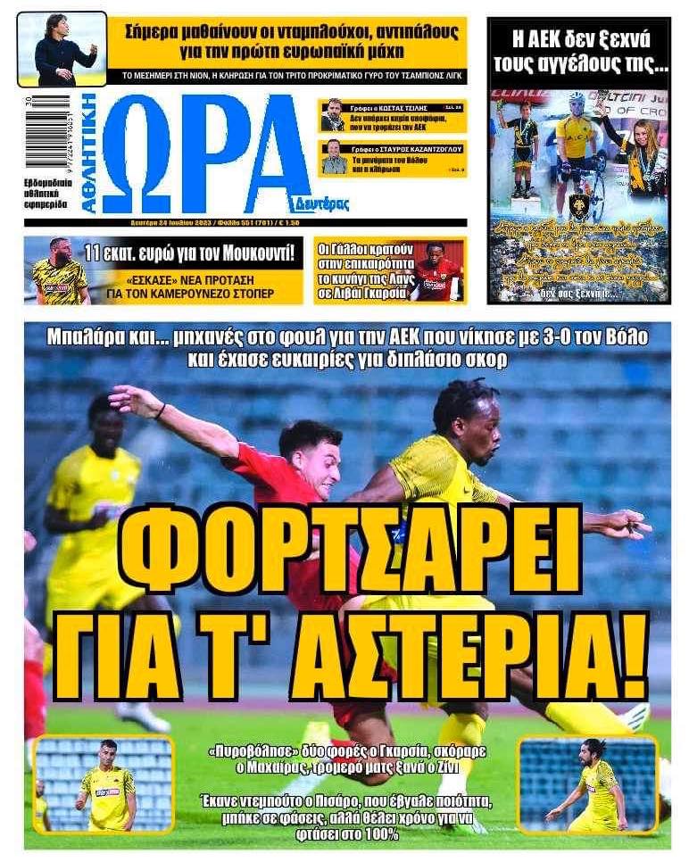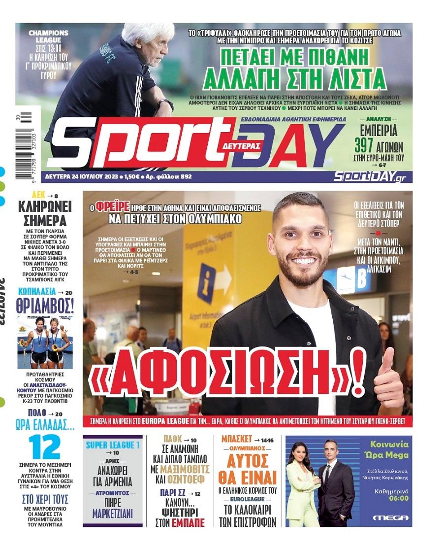 Πρωτοσέλιδα αθλητικών εφημερίδων για τη Δευτέρα 24 Ιουλίου 2023