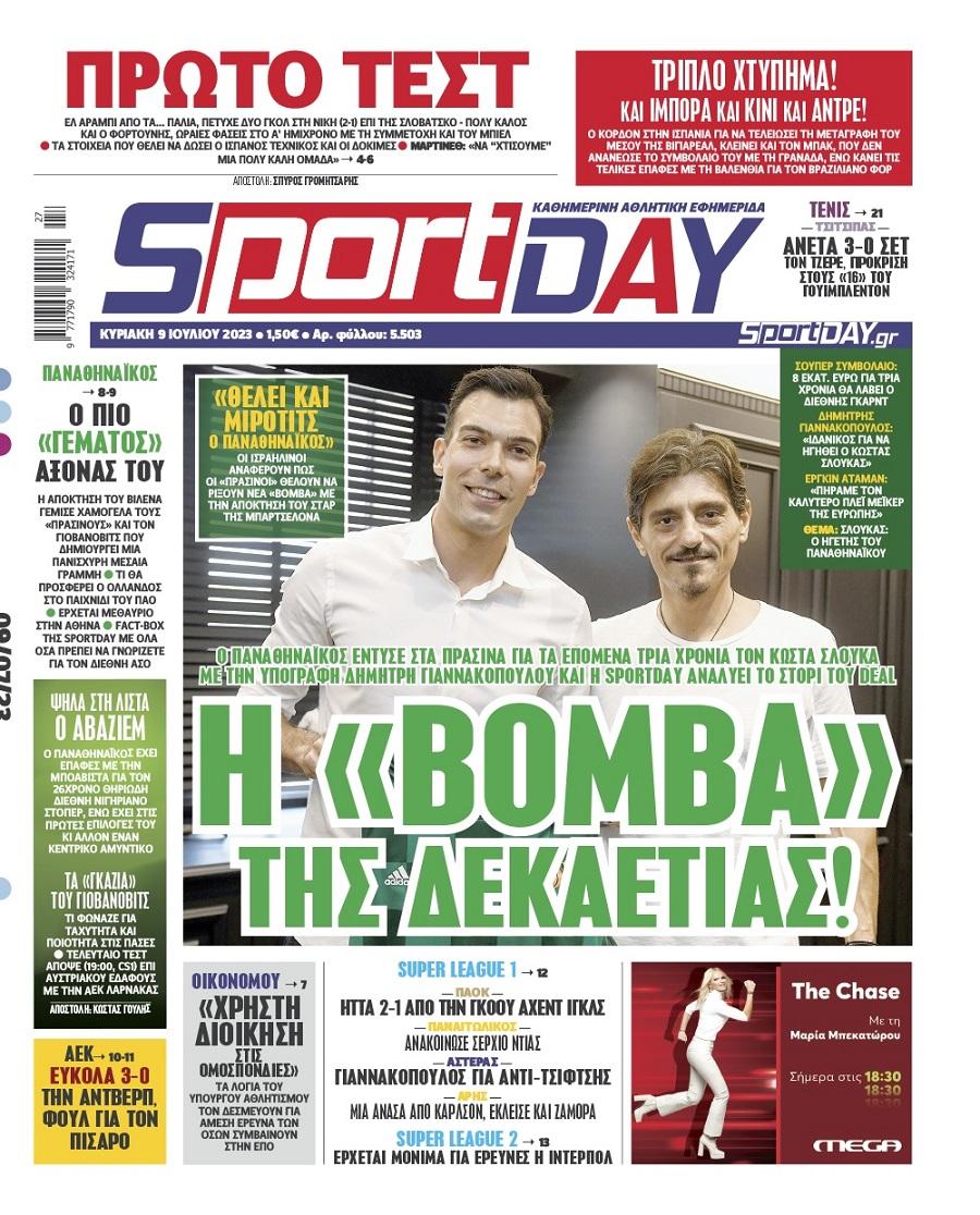 Πρωτοσέλιδα αθλητικών εφημερίδων για την Κυριακή 9 Ιουλίου 2023