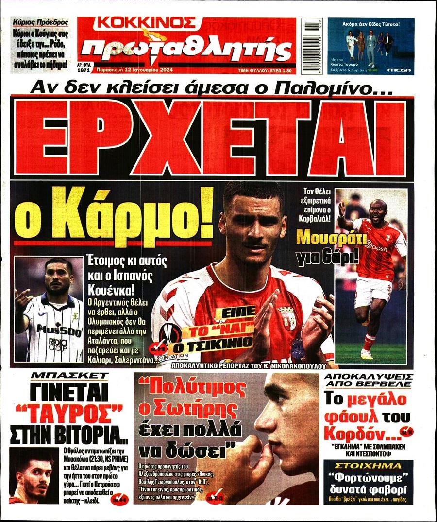 Πρωτοσέλιδα αθλητικών εφημερίδων για την Παρασκευή 12 Ιανουαρίου 2024