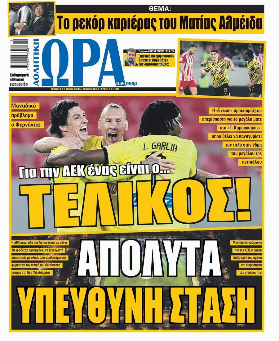Πρωτοσέλιδα αθλητικών εφημερίδων για το Σάββατο 10 Μαΐου 2024